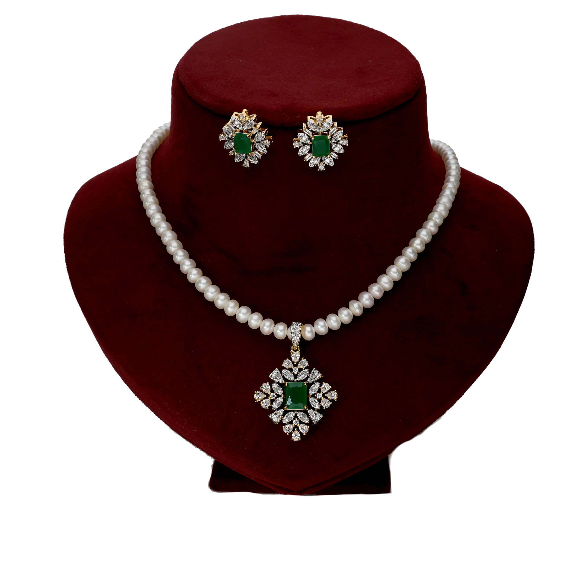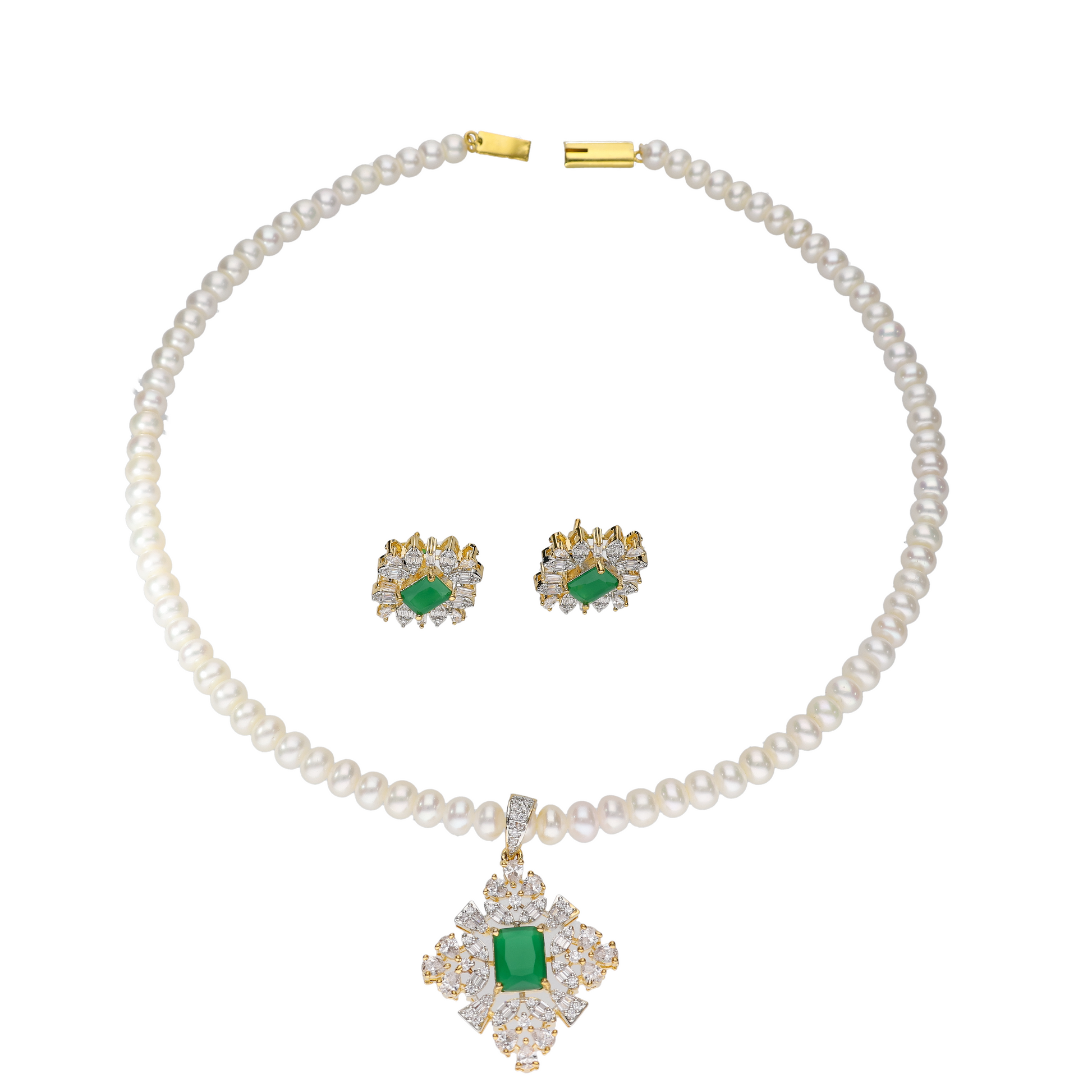 An Emerald Stone and White Pearl AD Set is perfect for a wide range of occasions due to its blend of sparkle and timeless elegance